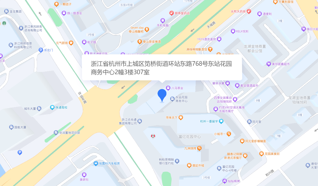 浙江省杭州市上城區筧橋街道環站東路768號東站花園商務中心2幢3樓307室