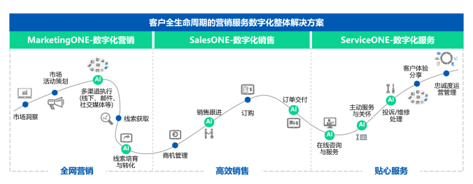 瑞泰信息多年來一直致力于用科技加速企業增長,賦能企業營銷服務數字化轉型。經過十多年的行業積累和市場布局,瑞泰信息已經在高科技制造業、裝備與汽車制造、家電與電子消費品、醫療大健康等領域成為中國先進的營銷服務數字化綜合解決方案服務商,打造了基于行業化的高端One系列產品(營銷數字化MarketingOne、銷售數字化SalesOne、客戶體驗與服務數字化ServiceOne)和聚焦成長型企業的G+系列產品(營銷云、銷售云、客服云)的產品矩陣。